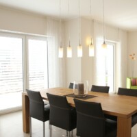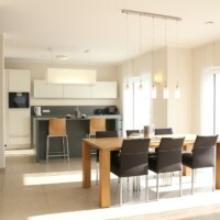 Im Erdgeschoss wirkt der offen gestaltete Grundriss sehr einladend und kommunikativ. An die Küche schließt sich mit direktem Zugang der große Hauswirtschaftsraum an. Ein direkter Zugang von der Garage zum Hauswirtschaftsraum lässt sich ergänzend und auf Wunsch einplanen. Somit sind kurze Wege stets berücksichtigt. Das Gäste- / Arbeitszimmer bietet ebenso viel Platz, so dass eine kombinierte Nutzung dieses Raums jederzeit möglich ist. Das Gäste-WC mit Dusche ist direkt gegenüber zu erreichen und dadurch mit äußerst praktischem Nutzwert.