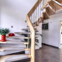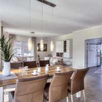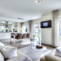 Der Eingangsbereich zeigt sich durch die offene Galerie mit Luftraum erhaben, hell und lichtdurchflutet. Hier empfangen Sie Ihre Gäste mit viel Platz. Durch eine Doppeltür gelangen Sie direkt in den Wohn- /Essbereich mit offener und sehr kommunikativer Küche.