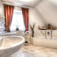 Das Dachgeschoss wartet mit einer großzügigen Trapezgaube und mit zwei Fenstern auf. Die großzügigen Dachüberstände an Traufe- und den Giebelseiten betonen den gediegenen Landhausstil. Zwei Kinderzimmer, das Elternschlafzimmer und das Bad runden das Raumangebot ab.