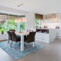Das Haus Leinetal ist ein beliebtes klassisches Landhaus mit Krüppelwalmdach. Der Erker bietet Komfort für den für den Essbereich. Weitere bodentiefe Fenster im Wohnbereich lassen das Erdgeschoss hell und lichtdurchflutet wirken. Ein besonderes Extra bietet die überdachte Terrasse, um windgeschützt den Sommer eher einläuten- und den Herbst noch herauszögern zu können.