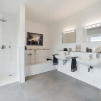 In dieser Traumvilla genießen Sie exzellenten Wohn- und Schlafkomfort. Ein Arbeits- / Gästezimmer im Erdgeschoss gepaart mit einem WC und zusätzlicher Dusche, sind durchdacht und bieten täglichen Wohnkomfort. So behalten Sie ihren Schlafbereich privat, wenn Sie Ihre Gäste beherbergen wollen.
